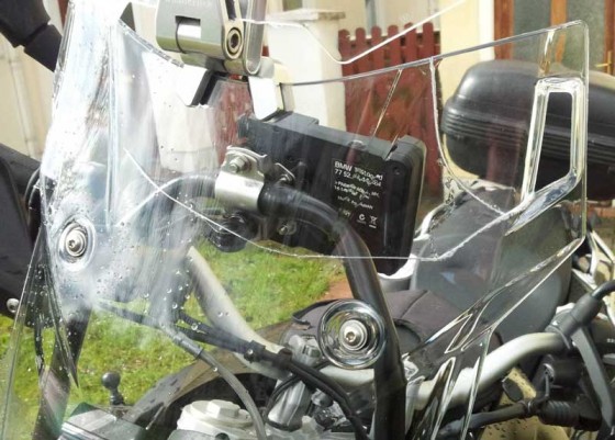 Due to a recent “DOH!” moment whereupon my F800GSA fell over from it’s side stand where I’d stupidly left it during a storm I found myself in need of a new screen. Luckily the AdventureSpec F800GS Adventure Crash Bars did their job and absorbed most of the shock and protected the bike for the most part. Not so the screen however which received a terminal crack.