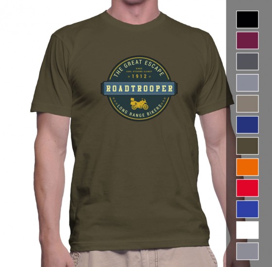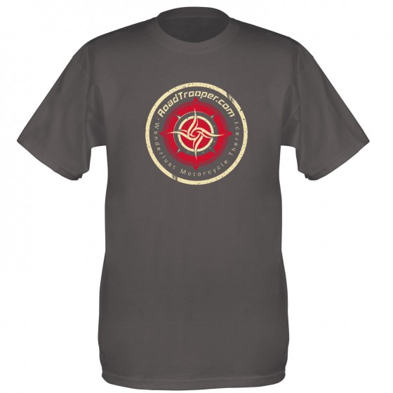 RoadTrooper Original 2016 Design. This t-shirt is available in the following colours: – Black – Chocolate – Dark Navy – Graphite (see model) – Navy – Olive – Royal – Zink – Shop Now