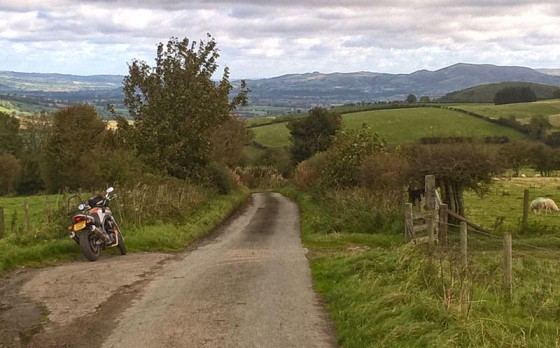 For the xenophobic you might need to take a moment to choose which route you prefer from this point onwards. If you stay on the B4368 you will flounder into Powys at the bottom of the hill. And if you’ve an adventurous devil may care streak you could take the unmarked road at the crossroads by the pub and head over the hill instead of round it. My wife is Welsh, so I know better. I took the unmarked road. Going up, its fabulous. Never met any traffic, the views are spectacular and the road although narrow stayed in one piece. Heading down is another matter; the hedgerows and sharp bends hide what might lurk beyond and the gravel, mud and detritus insists you focus on keeping the rubber side down. But since it all ended well by the time I re-joined the B4368 it was brilliant fun. Oops, we’re in Powys whichever route we take as the Welsh/English border can’t make its mind up whether to go north or east round these parts. At least I saw no border guards.