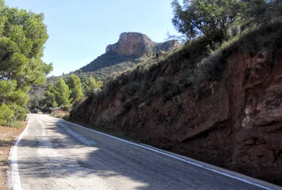 Leaving Altura was a doddle, I found the CV-25 and for the first few miles it was a very pleasant ride, through olive groves and the occasional vineyard. Along the way, I had to negotiate getting in front of squadrons, of lycra clad cyclists. At the lower level, this wasn’t too difficult but after I reached the road sign that warned ‘bends for the next 3km’, their progress was hampered by the climb and mine was hampered by their hogging all the road. Then it got serious. First gear, open clutch a little, high revs, sharp left, don’t look down, that drop is getting scary. Second gear until the next bend, down to first, swing out and attack the hairpin, second gear, climb. Repeat and rinse sweat from helmet. This isn’t a road, it’s a staircase. And it wasn’t only 3 km distance either.
