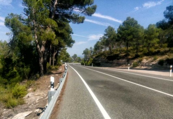 The road down to Teruel tumbles nicely through narrowing valleys, crosses over dry river beds, around bends heavily protected by safety barriers and wonderfully long straights. I’m losing altitude now and the lower we get, the warmer the wind against my upper body gets.