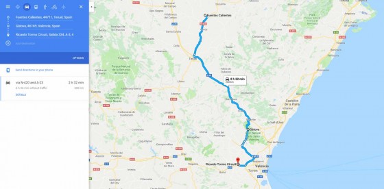 Fuentes Calientes to Ricardo Tormo Circuit Valencia