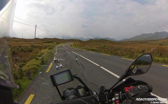 This whole stretch of road, always a highlight for me, is a piece of pure motorcycling heaven as the views of the haunting Mweelrea Mountains do a fine job of making you feel insignificant to the passage of time. Check out the video below which was taken on my last ride here in Sept 2014, unfortunately I got caught up in a classic car rally, usually there’s not so much traffic. It has to be said though, fair play to this well organised club as they were all very accommodating in letting us lads on the bikes to overtake them as safely as could be managed on a narrow road.